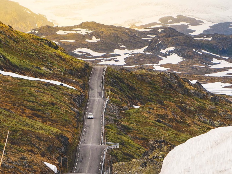 Idag väntar en dag med otroliga naturscenerier samt två fantastiska stavkyrkor varav vi tittar in i en av dem. Vi kommer fram till Lom med dess berömda stavkyrka där vi viker av på Nordeuropas högst belägna väg över Sognefjellet. Fjällövergången hör till de mest berömda och skönaste i landet. Vi passerar den gamla 1600-talsgården Elveseter med det märkliga 40 meter höga frihetsmonumentet. Vi arbetar oss uppåt där växtligheten ersätts av glaciärer och höga toppar. Vi fortsätter vår klättring upp till Sognefjellshytta med Sognefjellet som är storslaget med utsikt över jöklarnas blekblå skrovliga isfall. Riksväg 55, som den heter, byggdes som beredskapsväg 1938, och går över fjället på 1434 meters höjd förbi Galdöpiggen. Vi kommer fram till Sognefjorden där vi tar färjan över till Laerdal känd för sitt fantastiska laxfiske. Vi kommer fram till Borgunds stavkyrka som byggdes omkring år 1180. Den är mycket välbevarad och den mest utmärkande av de norska stavkyrkorna. På kvällen kommer vi till Valdres vackra huvudstad Fagernes för middag och övernattning. Ca 37 mil