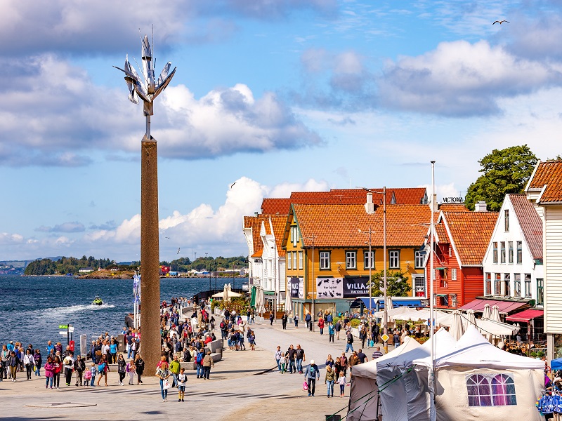 Idag har vi en spännande dag framför oss. Vi startar tidigt på morgonen och tar oss västerut genom storslagen, obebyggd mark och ner genom en mängd hårnålskurvor till botten av Lysefjorden. Här kör vi ombord på en båt som under knappt tre timmar ska ta oss till utkanten av Stavanger. På Lysefjorden får vi möjlighet att se den över 700 meter höga berömda klippan Predikstolen från sjösidan och beskåda de fantastiska vyerna och den storslagna naturen. Predikstolen är en av de mest fotograferade platserna i landet. Vi checkar in på eftermiddagen och tar därefter en skön promenad till gamla Stavanger som består av enbart vita trähus som slingrar sig uppför sluttningen. Vi tar oss fram på kullerstensgator mellan husen som ligger tätt. Den gamla vita staden är norra Europas största bestånd av trähus och har också en plats på Unescos världsarvslista. I dag är det fint att bo här, så var det inte förr. Stavanger är numera Norges oljehuvudstad. Stavanger var till en början en stad som levde på sitt fiske. Efter fisket kom konservindustrin. Och i mitten på 60-talet gjordes oljefynden. Oljan har gjort Stavanger till Norges rikaste stad och även gett den en internationell prägel tack vare alla de som kommer för att jobba med oljeindustrin. Det finns ett 50-tal plattformar en timmes helikopterfärd bort från Stavanger. Resten av kvällen kan vi själva upptäcka vad staden har att erbjuda bl.a en mängd trevliga restauranger i hamnen. Ca 21 mil