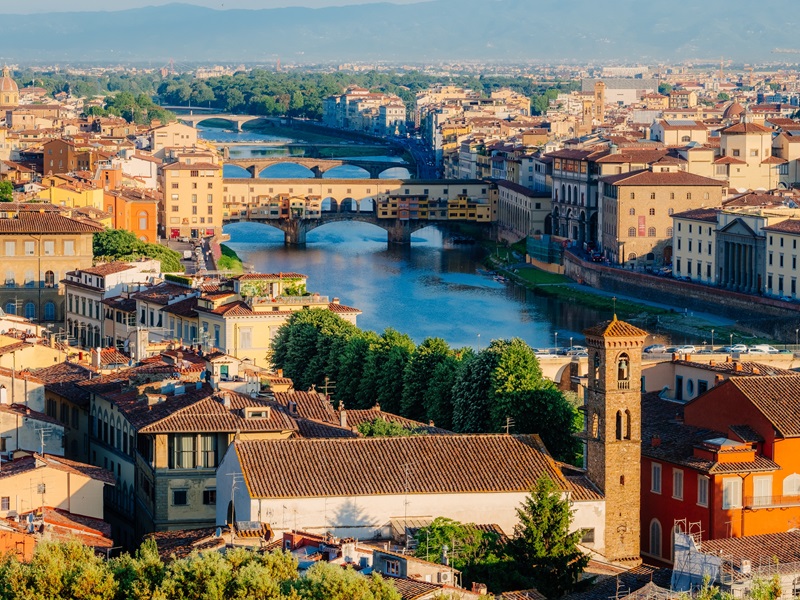 Efter frukost rekommenderas ett besök på den stora marknaden som stoltserar med allt från kläder till smycket. Vid lunchtid promenerar vi till tågstationen och tar tåget fram och tillbaka på vår utflykt till Florens. Vi får därmed en extra upplevelse och massor av lokal atmosfär. Florens med alla sina konstskatter och palats, sina affärer och sin medeltida stadskärna. Florens, eller Firenze på italienska, är kulturens och det italienska modets huvudstad. De ståtliga kyrkorna och renässanspalatsen dominerar stadsbilden. På vår stadspromenad med lokalguide kommer vi att passera Michelangelos Davidskulptur, Domen Santa Maria del Fiore med dess baptisteri och klocktorn, museet Uffizierna samt bron Ponte Veccio. Efter att själen och köplusten fått sitt är det bara att slå sig ner på närmaste Piazza och njuta av en Café Correto, spetsad med likör, och en bit Castagnaccio, en kaka gjord på kastanjemjöl. Middag äter vi på egen hand bland den mångfald av restauranger som finns i staden.