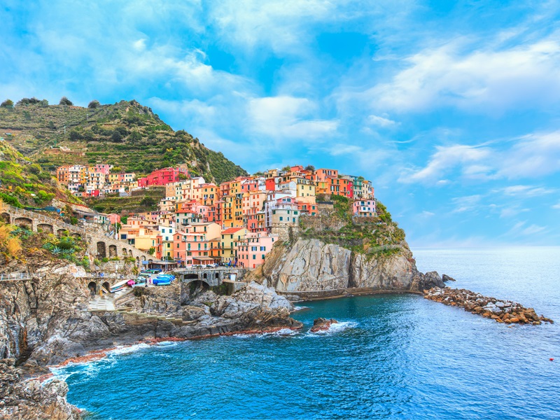 Nationalparken Cinque Terre med sina fem pittoreska byar är ett av Italiens mest berömda resmål. Den finns upptagen på Unescos världsarvslista och ligger längs den del av den liguriska Rivieran som kallas Levante, soluppgångens Riviera. Länge kunde man bara röra sig mellan byarna via åsnestigar eller med båt men nu för tiden förbinds byarna med järnväg så idag blir det mycket lokaltåg mellan byarna som var och en har sin charm. De fem pittoreska fiskebyarna med färggranna hus ligger som ett pärlband längs kusten. Landskapet är svindlande vackert och de medeltida orterna klättrar uppför bergen inbäddade bland olivlundar och vinodlingar. Åter till hotellet för en god middag och en god natts sömn. Ca 20 mil